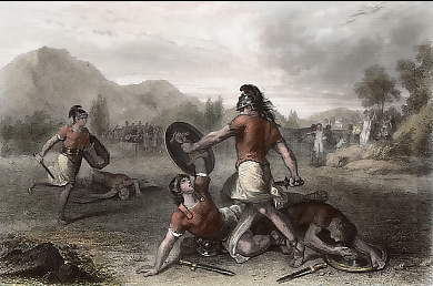 Ilias. Strichradierung von Feillet und Laqueson nach John Flaxman. 1827. Sehr guter Zustand. Handkoloriert. 24x16,5cm. Mit Passepartout.