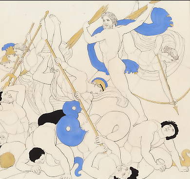 Ilias. Strichradierung von Feillet und Laqueson nach John Flaxman. 1827. Sehr guter Zustand. Handkoloriert. 32,5x16,5cm. Mit Passepartout.