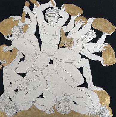 Mythologie. Strichradierung von Soyer nach John Flaxman. 1821. Sehr guter Zustand. Handkoloriert. 32x14cm. Mit Passepartout.