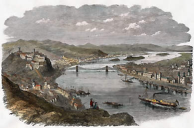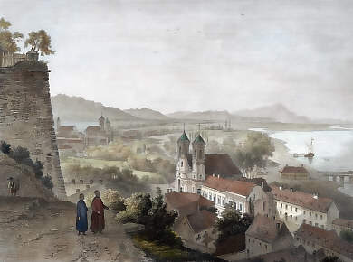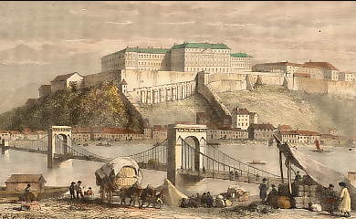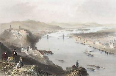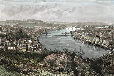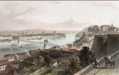 Hungary. Original steel engraving drawn by W. H. Bartlett, engraved by J. Hinchliff. 1842. Very good condition. Modern hand colouring. 17,5x12cm. Mounted.