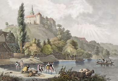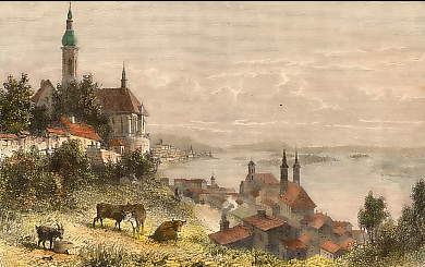 Ungarn. Stahlstich von F. Hablitschek nach L. Rohbock. ca 1850. Sehr guter Zustand. Handkoloriert. 16,5x10,5cm. Mit Passepartout.