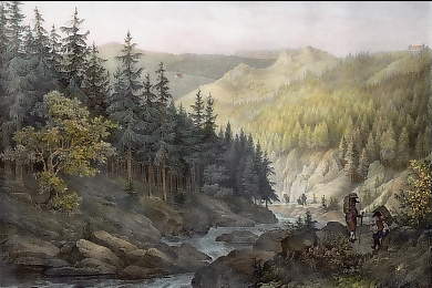 Tschechien. Lithographie von C. W. Arldt nach C. Müller, gedruckt von F. Weider. 1845. Guter Zustand. Handkoloriert. 22x14,5cm. Mit Passepartout.