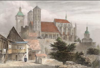 Tschechien. Lithographie von C. W. Arldt nach B. Bürger, gedruckt von F. Weider. 1845. Leichte Verschmutzung im unteren Rand. Handkoloriert. 22,5x15cm. Mit Passepartout.