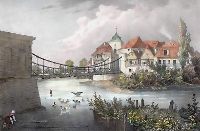 Tschechien. Stahlstich. Institut in Hidlburghausen. 1839. Sehr guter Zustand. Handkoloriert. 14,5x9,5cm. Mit Passepartout.