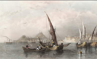Griechenland. Stahlstich von H. Adlard nach W. H. Bartlett. 1837. Sehr guter Zustand. Falscher Titel: der richtige ist Castelorizo, Near Rhodes. Handkoloriert. 19x12cm. Mit Passepartout.
