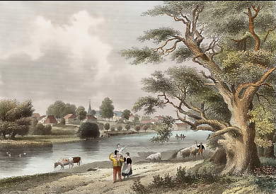 Deutschland. Stahlstich von J. J. Hinchliff nach L. Richter. 1841. Guter Zustand. Handkoloriert. 15x10,5cm. Mit Passepartout.