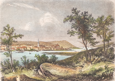 Germany. Original wood engraving drawn by K. Girardet, engraved by Pontenier. 1863. Very good condition. Hand-coloured. 15x9,5cm. Matted.