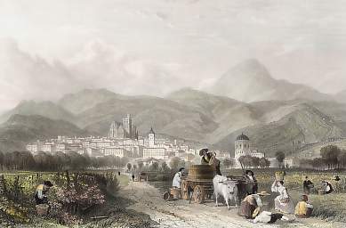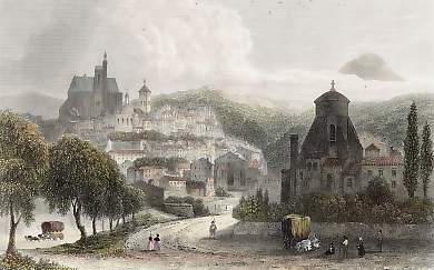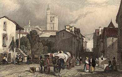 France. Original steel engraving drawn by Harding, engraved by J. Cousen. 1834. Good condition. Hand-coloured. 15x10cm. Mounted.