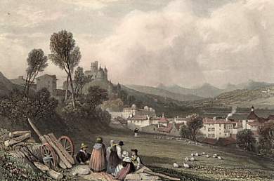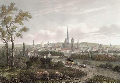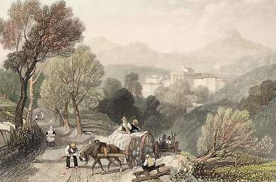 Frankreich. Stahlstich von J. Cousen nach J. D. Harding. 1834. Sehr guter Zustand. Handkoloriert. 14,5x10cm. Mit Passepartout.
