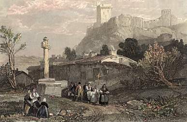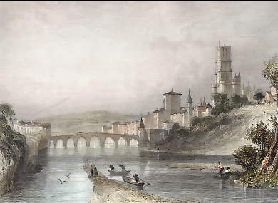 France. Original steel engraving by J. D. Harding, engraved by J. Fisher. n.d. ca 1870. Very good condition. Hand-coloured. 14x9cm. Matted.
