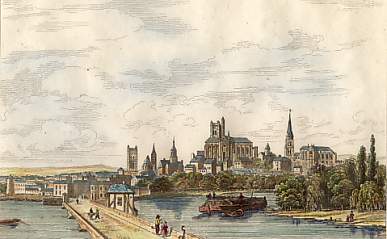 Frankreich. Stahlstich von Schroeder nach Wilkes. 1844. Druckfehler im Himmel. Handkoloriert. 16,5x11,5cm. Mit Passepartout.