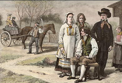 Schweden. Holzstich von Laplante nach T. Taylor. 1878. Sehr guter Zustand. Handkoloriert. 19x13cm. Mit Passepartout.