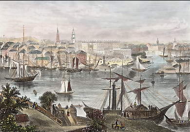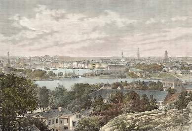 Sweden. Original steel engraving drawn by Exdorf, engraved by W. French. ca 1850. Very good condition. Modern hand colouring. 16x13cm. Matted.