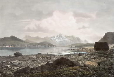 Skandinavien. Holzstich von C. Laplante nach Lix. 1880. Sehr guter Zustand. Handkoloriert. 19x13cm. Mit Passepartout.
