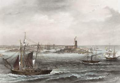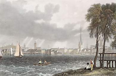 Dänemark. Stahlstich von E. I. Roberts nach Cpt. Batty. 1829. Sehr guter Zustand. Handkoloriert. 20,5x13cm. Mit Passepartout.