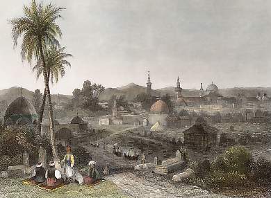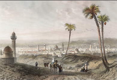 Syrien. Stahlstich von J. Appleton nach W. H. Bartlett. ca 1837. Sehr guter Zustand. Handkoloriert. 18,5x12,5cm. Mit Passepartout.