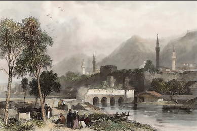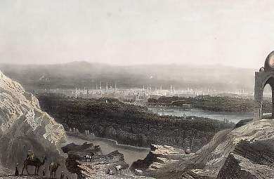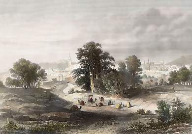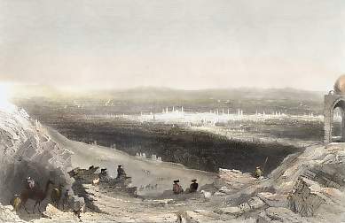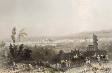 Syria. Original steel engraving drawn by W. H. Bartlett, engraved by J. C. Bentley. 1837. Very good condition. Hand-coloured. 19x12cm. Matted.