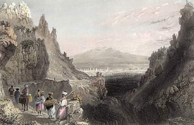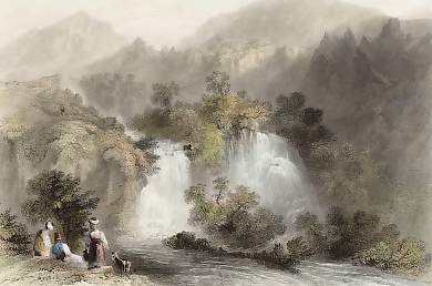 Syria. Original steel engraving drawn by W. H. Bartlett, engraved by C. Cousen. 1855. Very good condition. Hand-coloured. 18,5x13cm. Mounted.