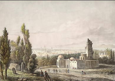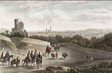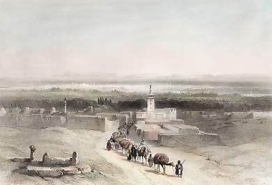 Syria. Original steel engraving drawn by W. H. Bartlett, engraved by F. W. Topham. 1837. Very good condition. Hand-coloured. 18,5x13cm. Matted.