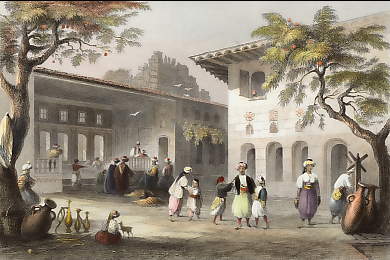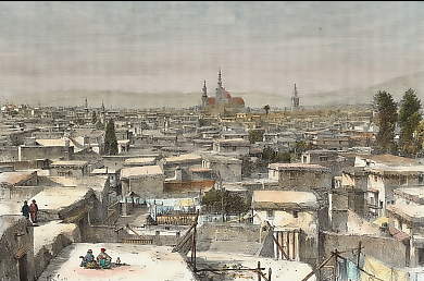 Syrien. Stahlstich von H. Adlard nach W. H. Bartlett. 1836. Sehr guter Zustand. Handkoloriert. 18,5x12,5cm. Mit Passepartout.