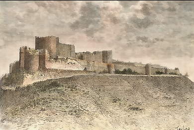 Syria. Original steel engraving drawn by W. Telbin, after a sketch by A. Campbell, engraved by J. H, Kernot. ca 1855. Very good condition. Hand-coloured. 18x12,5cm. Matted.