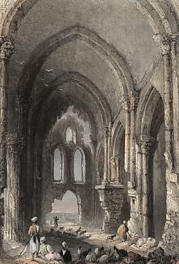 Syrien. Stahlstich von F. J. Havell nach W. H. Bartlett. 1838. Sehr guter Zustand. Handkoloriert. 19x12,5cm. Mit Passepartout.