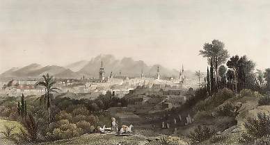 Syrien. Stahlstich von J. Jeavons nach W. H. Bartlett. 1836. Sehr guter Zustand. Handkoloriert. 18,5x12,5cm. Mit Passepartout.
