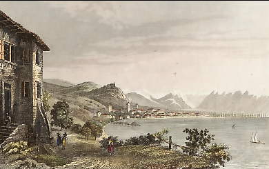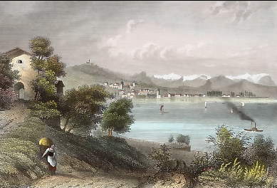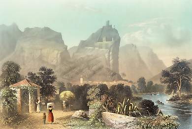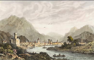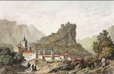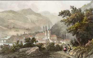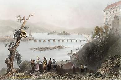 Austria. Original steel engraving drawn by W. H. Bartlett, engraved by J. C. Bentley. 1842. Very good condition. Hand-coloured. 17,5x12cm. Matted.
