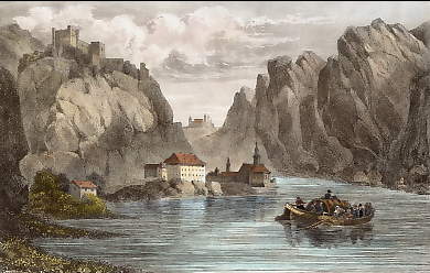 Austria. Original steel engraving drawn by W. H. Bartlett, engraved by J. C. Armytage. 1842. Good condition. Hand-coloured. 18,5x13cm. Matted.