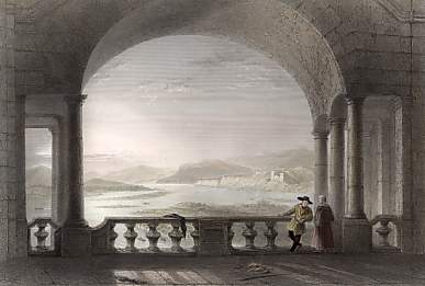 Italien. Stahlstich von Boisseau nach Vanderburch. 1838. Leicht stockfleckig im unteren Rand. Handkoloriert. 14x9cm. Mit Passepartout.
