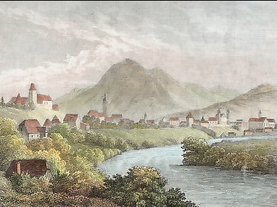 Österreich. Stahlstich von E. Challis nach W. H. Bartlett. 1842. Sehr guter Zustand. Handkoloriert. 18x13cm. Mit Passepartout.