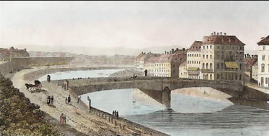 Austria. Original steel engraving, drawn by G. Shepherd, engraved by R. Brice. ca 1835. Good condition. Hand-coloured. 15x9,5cm. Matted.