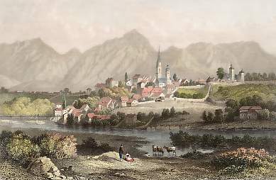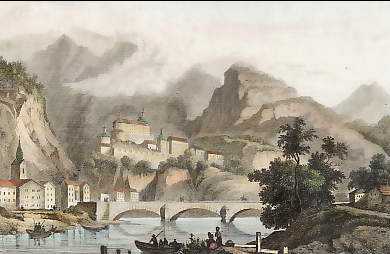 Österreich. Stahlstich von E. Brandardnach W. H. Bartlett. 1842. Sehr guter Zustand. Handkoloriert. 18,5x12,5cm. Mit Passepartout.