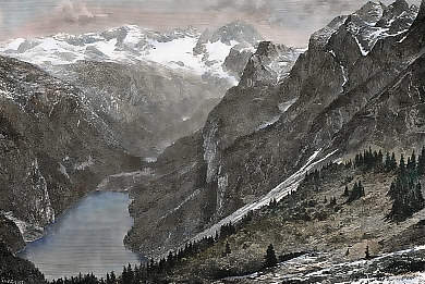 Österreich. Stahlstich von A. Fesca nach L. Rohbock. 1871. Guter Zustand. Handkoloriert. 17x11,5cm. Mit Passepartout.