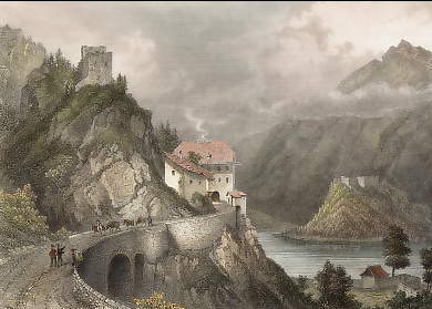 Austria. Original steel engraving drawn by W. H. Bartlett, engraved by J. Hinchliffe. 1842. Very good condition. Hand-coloured. 18x12cm. Matted.