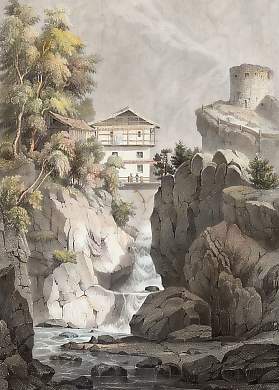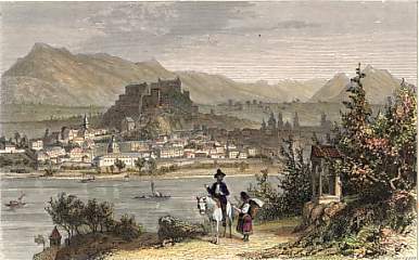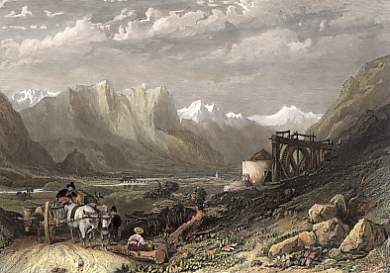 Austria. Original steel engraving drawn by W. H. Bartlett, engraved by J. C. Armytage. 1842. Good condition. Hand-coloured. 18,5x12cm. Matted.