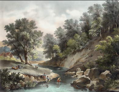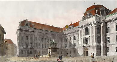 Österreich. Lithographie von Champin nach Moesmer. 1837. Leichte Verschmutzung in den Rändern. Althandkolorierung. 26x20cm. Mit Passepartout.