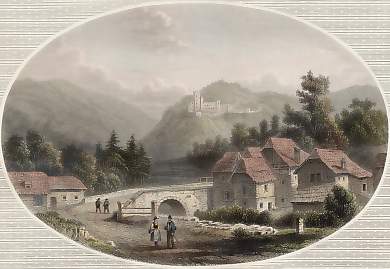 Austria. Original steel engraving drawn by H. Lauterbach, engraved by W. French. 1853. Very good condition. Hand-coloured. 18,5x13,5cm. Mounted.