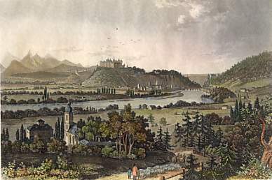 Österreich. Stahlstich von R. Wallis nach W. H. Bartlett. 1842. Sehr guter Zustand. Handkoloriert. 18x12cm. Mit Passepartout.