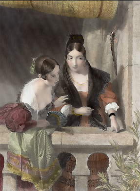 Orientalism. Original steel engraving drawn by A. E. Chalon, engraved by H. Robinson. 1835. Very good condition. Hand-coloured. 11,5x 9cm. Matted.