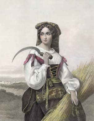 Original steel engraving drawn by L. Hicks, engraved by A. H. Payne. ca 1840. Very good condition. Hand-coloured. 14x11cm. Matted.