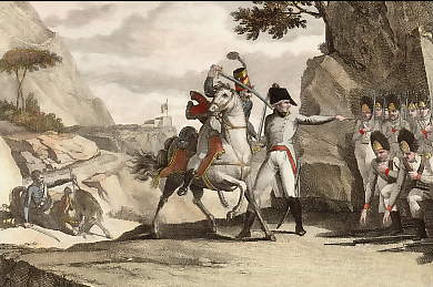 France. Original etching, drawn by Lafitte. 1807. Historical notice in french under the image. Very good condition. Hand-coloured. 13x9cm. Matted.