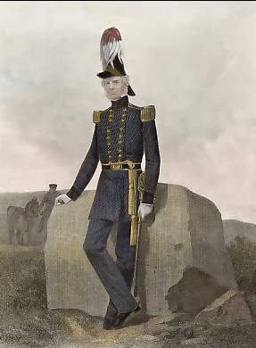 Militaria. Original steel engraving , engraved by Fauchery. 1827. Good condition. Hand-coloured. 10x9,5cm. Matted.