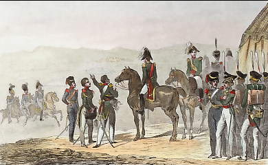 France. Original lithography (by Raffet), printed by Auguste Bry. 1846. Very good condition. Hand-coloured. 25x17,5cm. Matted.