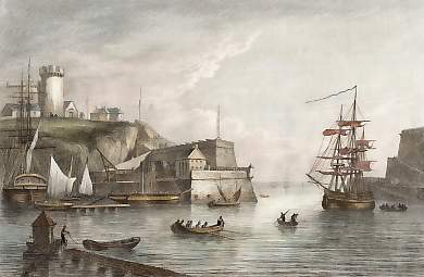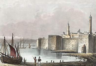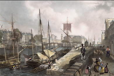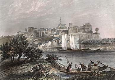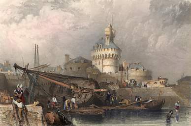 France. Original steel engraving, drawn by C. Stanfield, engraved by W. Floyd. 1834. Good condition. Hand-coloured. 14,5x10cm. Matted.