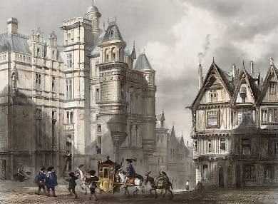 France. Original steel engraving, engraved by Couché and Desaulx after Jolivaux. 1835. Light foxing in the margins. Hand-coloured. 15,5x11cm. Matted.