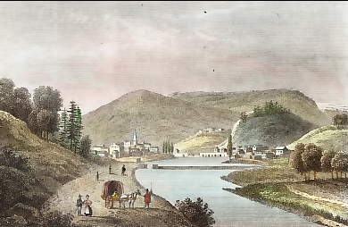 France. Original steel engraving drawn by A. Tluarig, engraved by J. Schroeder. 1851. Very good condition. Hand-coloured. 16,5x10,5cm. Matted.