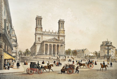 Paris. Original lithograph, lithographed by Bachelier after F. Benoist, figures by A. Bayot. 1861. Very good condition. Hand-coloured. 35,5x26cm.
