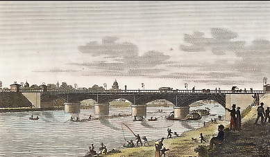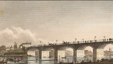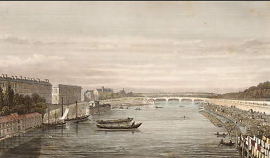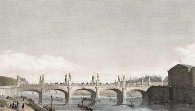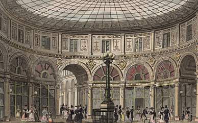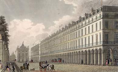 Paris. Steel engraving "from original drawings taken under the direction of A. Pugin, the engraving executed under the superintendence of C. Heath". 1830. Light foxing. No title under the plate. On chine aplliqué. Hand-coloured. 14,5x8,5cm. Matted.