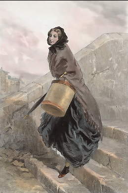 Paris. Original steel engraving, engraved by E. Rouargue after Gavarni. 1856. Very good condition. Hand-coloured. 18,5x12,5cm. Matted.
